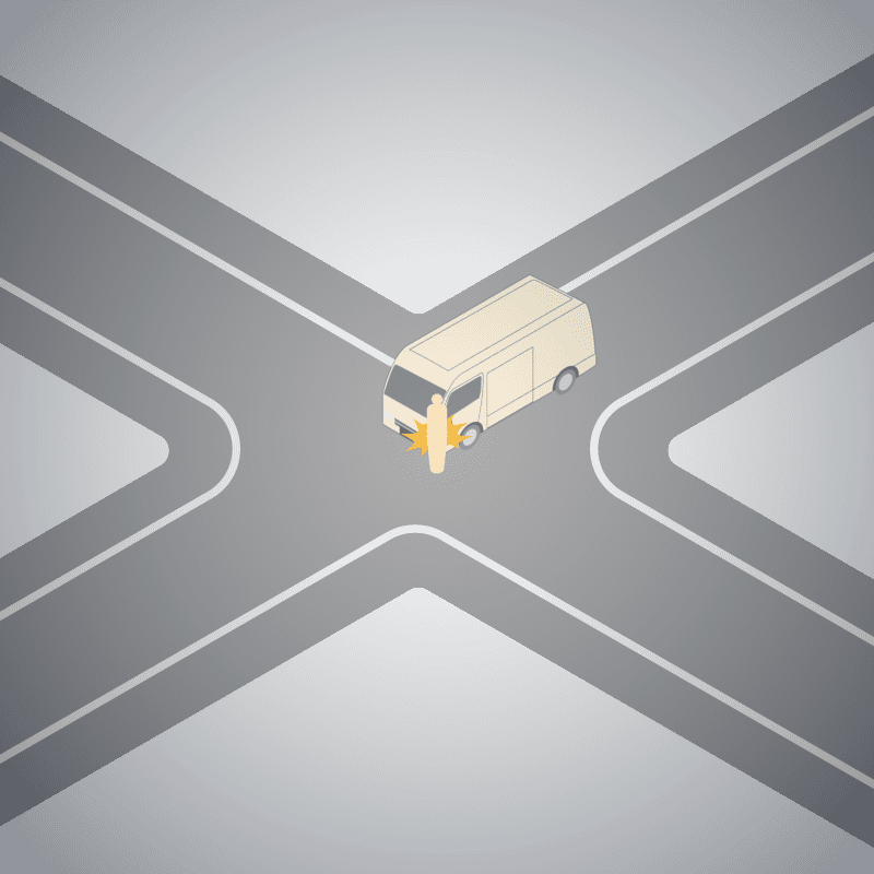 ・イラストに使用している各要素(車、背景、車、天候、信号、衝突地点など)は、代表的なイメージをイラスト化しており、色や形状等含め現実の事故の状況とは異なります。あくまで、事故のイメージとして参考までにご活用ください。