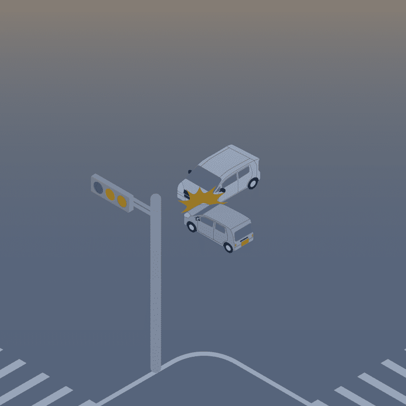 ・イラストに使用している各要素(車、背景、車、天候、信号、衝突地点など)は、代表的なイメージをイラスト化しており、色や形状等含め現実の事故の状況とは異なります。あくまで、事故のイメージとして参考までにご活用ください。
