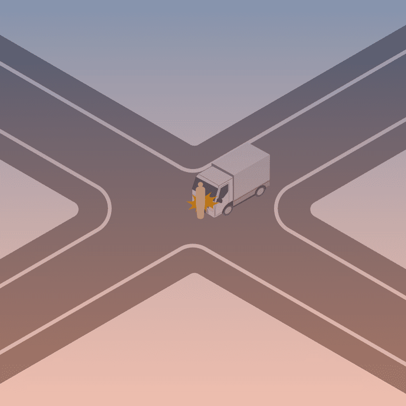 ・イラストに使用している各要素(車、背景、車、天候、信号、衝突地点など)は、代表的なイメージをイラスト化しており、色や形状等含め現実の事故の状況とは異なります。あくまで、事故のイメージとして参考までにご活用ください。