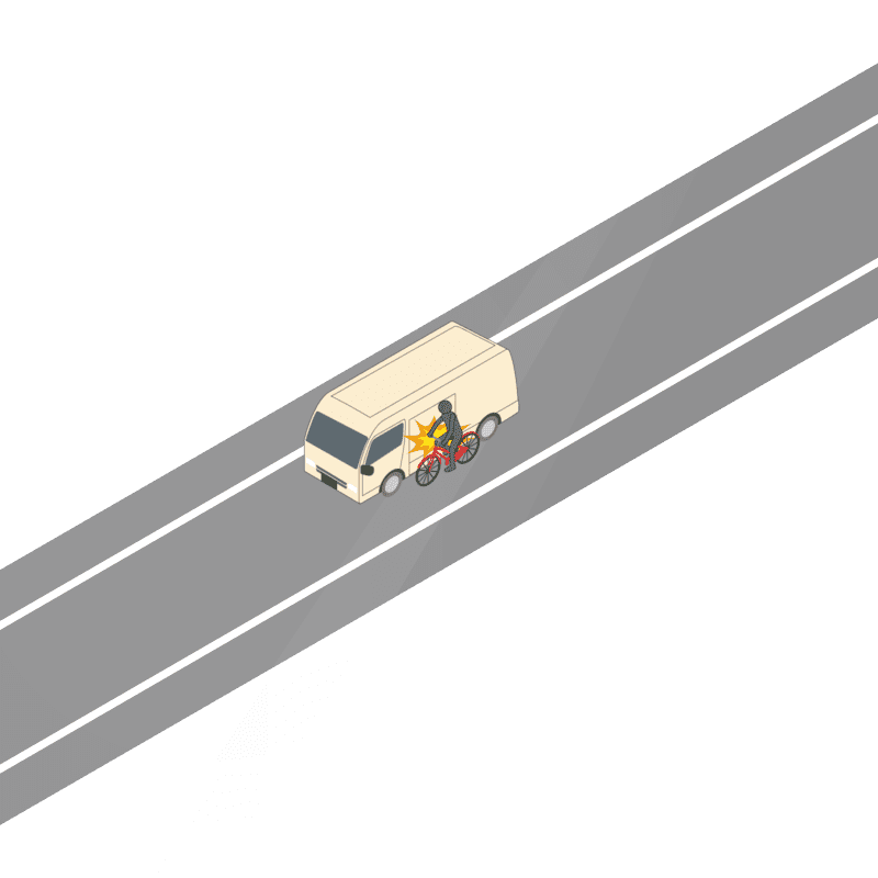 ・イラストに使用している各要素(車、背景、車、天候、信号、衝突地点など)は、代表的なイメージをイラスト化しており、色や形状等含め現実の事故の状況とは異なります。あくまで、事故のイメージとして参考までにご活用ください。