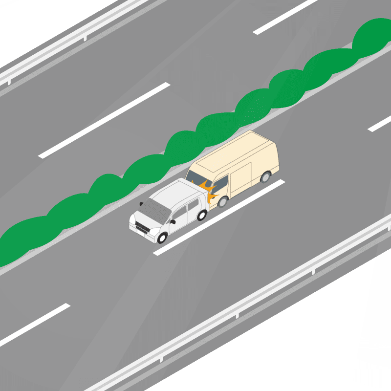 ・イラストに使用している各要素(車、背景、車、天候、信号、衝突地点など)は、代表的なイメージをイラスト化しており、色や形状等含め現実の事故の状況とは異なります。あくまで、事故のイメージとして参考までにご活用ください。