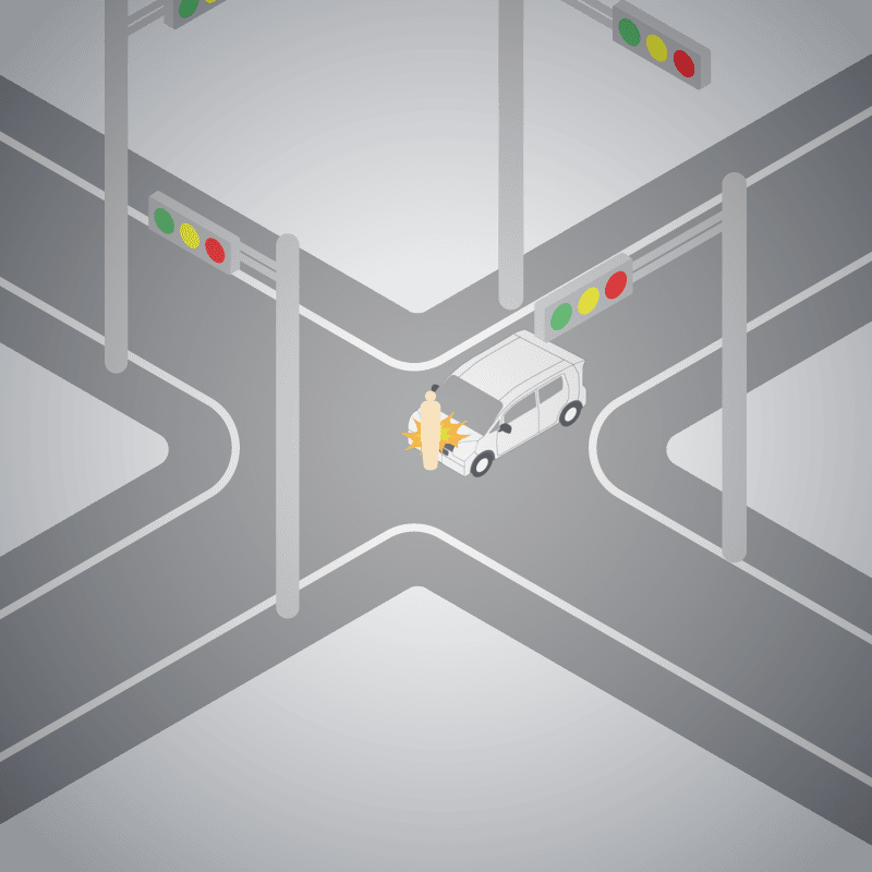 ・イラストに使用している各要素(車、背景、車、天候、信号、衝突地点など)は、代表的なイメージをイラスト化しており、色や形状等含め現実の事故の状況とは異なります。あくまで、事故のイメージとして参考までにご活用ください。