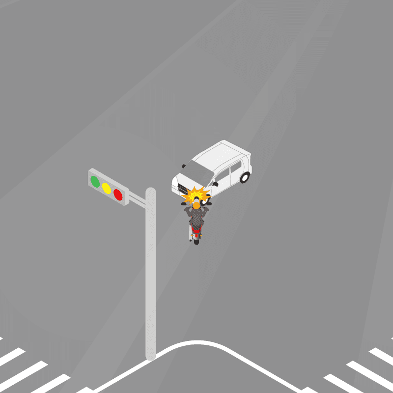 ・イラストに使用している各要素(車、背景、車、天候、信号、衝突地点など)は、代表的なイメージをイラスト化しており、色や形状等含め現実の事故の状況とは異なります。あくまで、事故のイメージとして参考までにご活用ください。