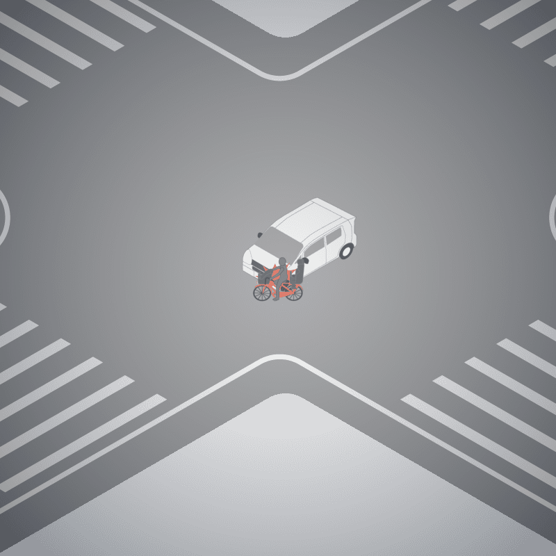 ・イラストに使用している各要素(車、背景、車、天候、信号、衝突地点など)は、代表的なイメージをイラスト化しており、色や形状等含め現実の事故の状況とは異なります。あくまで、事故のイメージとして参考までにご活用ください。