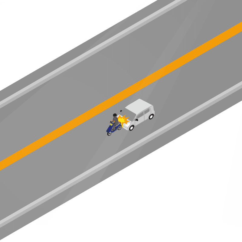 ・イラストに使用している各要素(車、背景、車、天候、信号、衝突地点など)は、代表的なイメージをイラスト化しており、色や形状等含め現実の事故の状況とは異なります。あくまで、事故のイメージとして参考までにご活用ください。