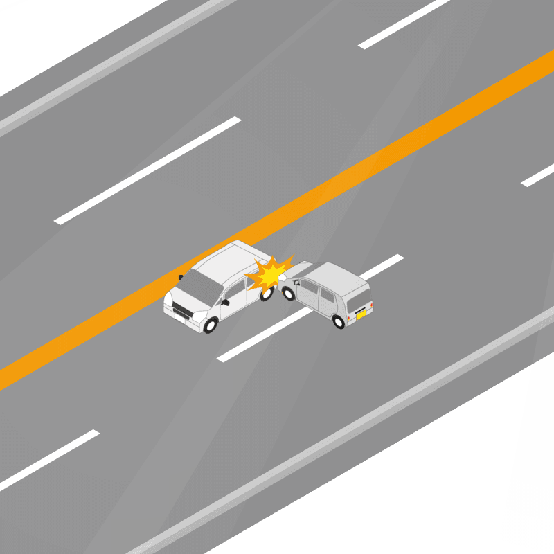 ・イラストに使用している各要素(車、背景、車、天候、信号、衝突地点など)は、代表的なイメージをイラスト化しており、色や形状等含め現実の事故の状況とは異なります。あくまで、事故のイメージとして参考までにご活用ください。