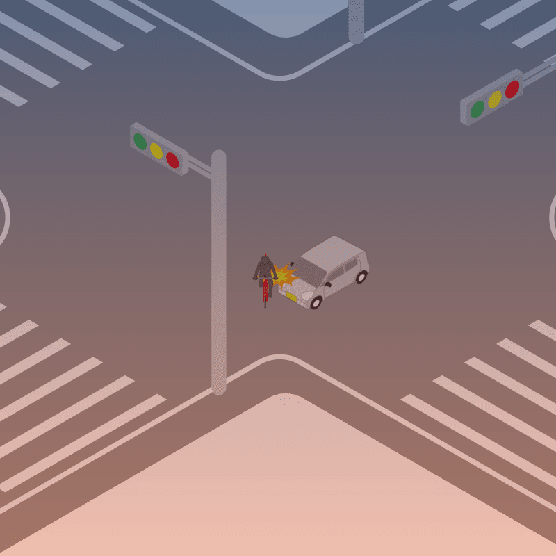 ・イラストに使用している各要素(車、背景、車、天候、信号、衝突地点など)は、代表的なイメージをイラスト化しており、色や形状等含め現実の事故の状況とは異なります。あくまで、事故のイメージとして参考までにご活用ください。