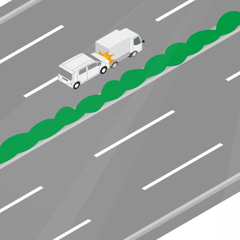 ・イラストに使用している各要素(車、背景、車、天候、信号、衝突地点など)は、代表的なイメージをイラスト化しており、色や形状等含め現実の事故の状況とは異なります。あくまで、事故のイメージとして参考までにご活用ください。