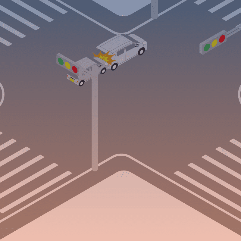 ・イラストに使用している各要素(車、背景、車、天候、信号、衝突地点など)は、代表的なイメージをイラスト化しており、色や形状等含め現実の事故の状況とは異なります。あくまで、事故のイメージとして参考までにご活用ください。