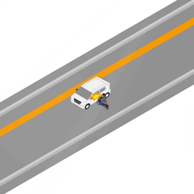 ・イラストに使用している各要素(車、背景、車、天候、信号、衝突地点など)は、代表的なイメージをイラスト化しており、色や形状等含め現実の事故の状況とは異なります。あくまで、事故のイメージとして参考までにご活用ください。