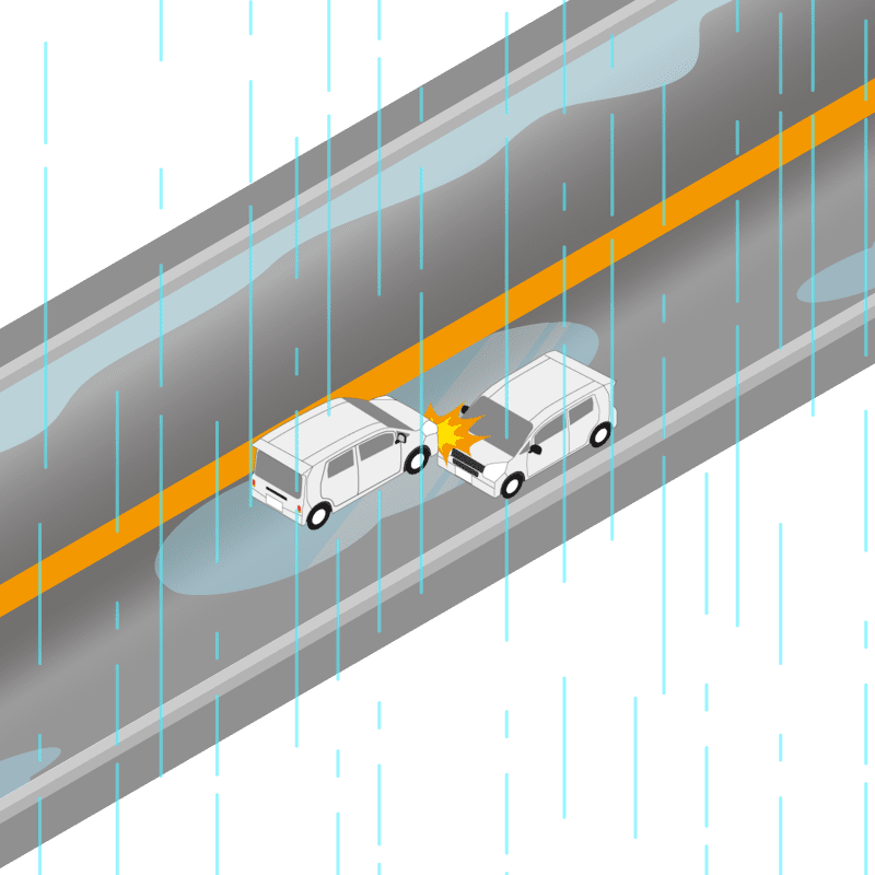 ・イラストに使用している各要素(車、背景、車、天候、信号、衝突地点など)は、代表的なイメージをイラスト化しており、色や形状等含め現実の事故の状況とは異なります。あくまで、事故のイメージとして参考までにご活用ください。