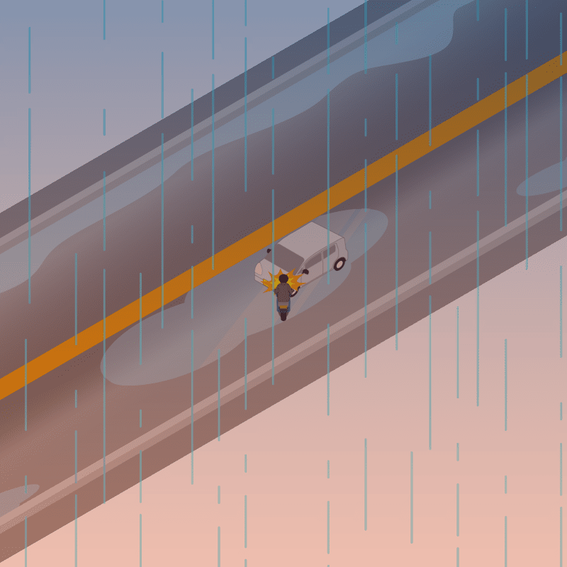 ・イラストに使用している各要素(車、背景、車、天候、信号、衝突地点など)は、代表的なイメージをイラスト化しており、色や形状等含め現実の事故の状況とは異なります。あくまで、事故のイメージとして参考までにご活用ください。