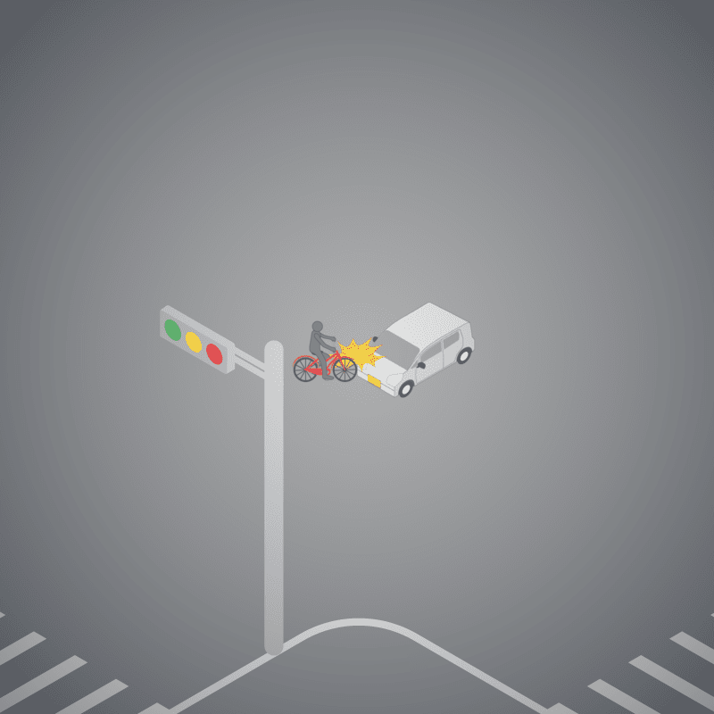 ・イラストに使用している各要素(車、背景、車、天候、信号、衝突地点など)は、代表的なイメージをイラスト化しており、色や形状等含め現実の事故の状況とは異なります。あくまで、事故のイメージとして参考までにご活用ください。