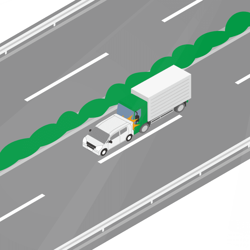 ・イラストに使用している各要素(車、背景、車、天候、信号、衝突地点など)は、代表的なイメージをイラスト化しており、色や形状等含め現実の事故の状況とは異なります。あくまで、事故のイメージとして参考までにご活用ください。