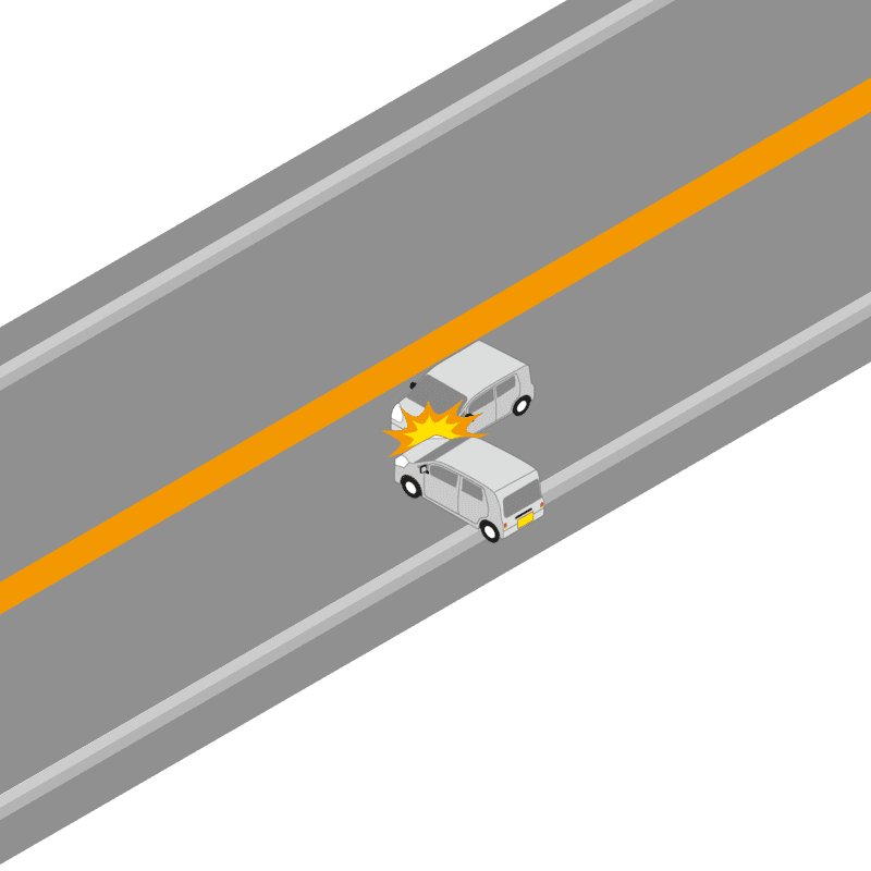 ・イラストに使用している各要素(車、背景、車、天候、信号、衝突地点など)は、代表的なイメージをイラスト化しており、色や形状等含め現実の事故の状況とは異なります。あくまで、事故のイメージとして参考までにご活用ください。