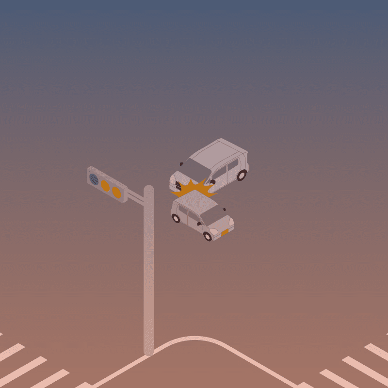 ・イラストに使用している各要素(車、背景、車、天候、信号、衝突地点など)は、代表的なイメージをイラスト化しており、色や形状等含め現実の事故の状況とは異なります。あくまで、事故のイメージとして参考までにご活用ください。
