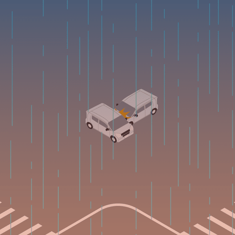 ・イラストに使用している各要素(車、背景、車、天候、信号、衝突地点など)は、代表的なイメージをイラスト化しており、色や形状等含め現実の事故の状況とは異なります。あくまで、事故のイメージとして参考までにご活用ください。