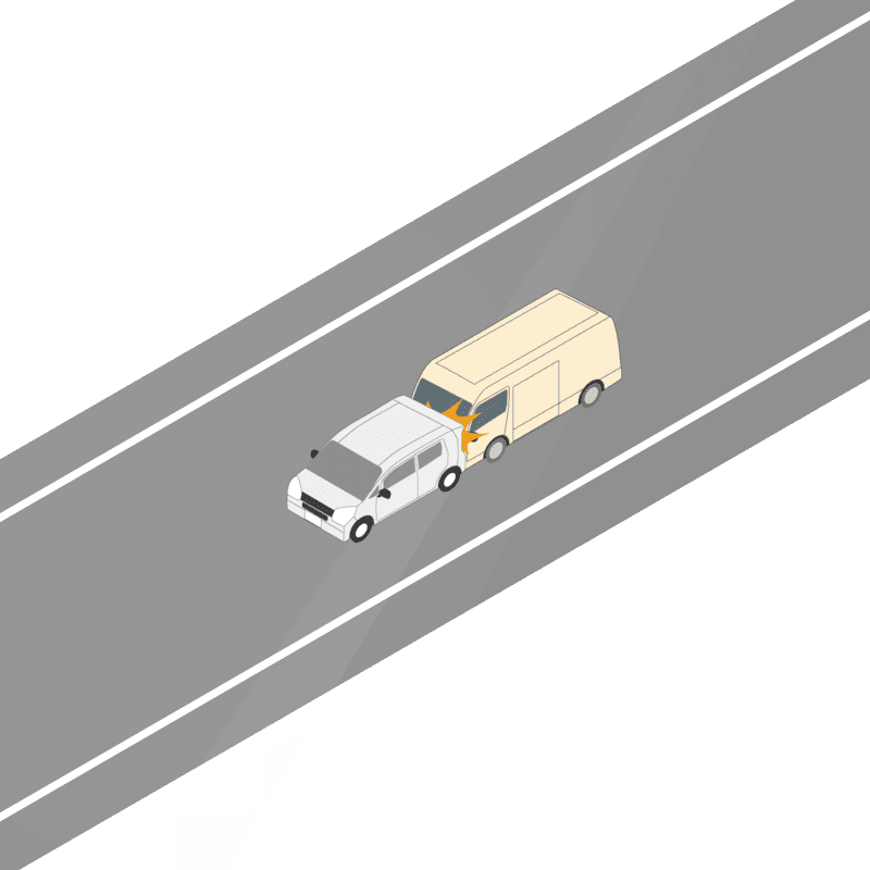 ・イラストに使用している各要素(車、背景、車、天候、信号、衝突地点など)は、代表的なイメージをイラスト化しており、色や形状等含め現実の事故の状況とは異なります。あくまで、事故のイメージとして参考までにご活用ください。