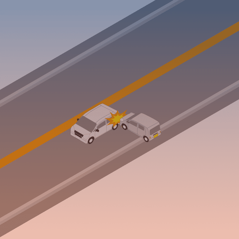 ・イラストに使用している各要素(車、背景、車、天候、信号、衝突地点など)は、代表的なイメージをイラスト化しており、色や形状等含め現実の事故の状況とは異なります。あくまで、事故のイメージとして参考までにご活用ください。