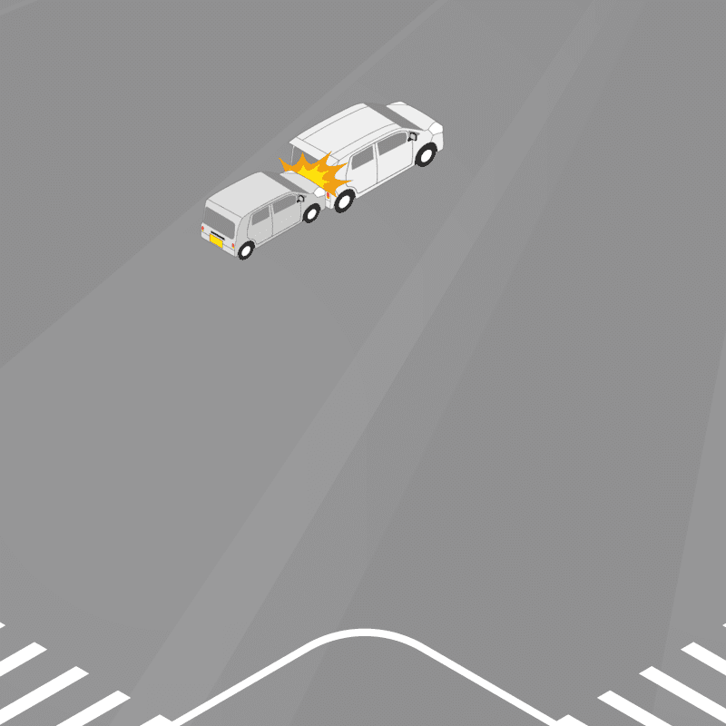 ・イラストに使用している各要素(車、背景、車、天候、信号、衝突地点など)は、代表的なイメージをイラスト化しており、色や形状等含め現実の事故の状況とは異なります。あくまで、事故のイメージとして参考までにご活用ください。