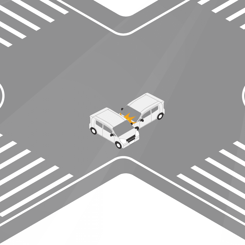 ・イラストに使用している各要素(車、背景、車、天候、信号、衝突地点など)は、代表的なイメージをイラスト化しており、色や形状等含め現実の事故の状況とは異なります。あくまで、事故のイメージとして参考までにご活用ください。