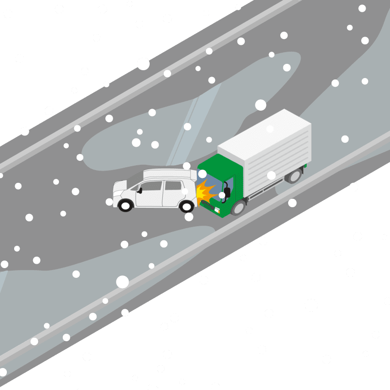 ・イラストに使用している各要素(車、背景、車、天候、信号、衝突地点など)は、代表的なイメージをイラスト化しており、色や形状等含め現実の事故の状況とは異なります。あくまで、事故のイメージとして参考までにご活用ください。