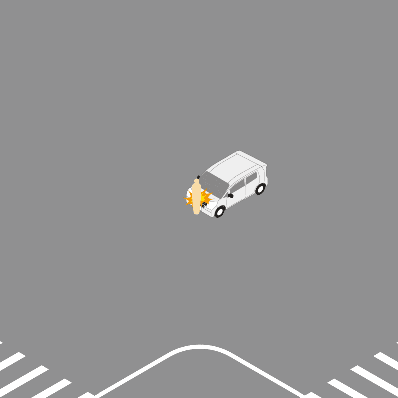 ・イラストに使用している各要素(車、背景、車、天候、信号、衝突地点など)は、代表的なイメージをイラスト化しており、色や形状等含め現実の事故の状況とは異なります。あくまで、事故のイメージとして参考までにご活用ください。