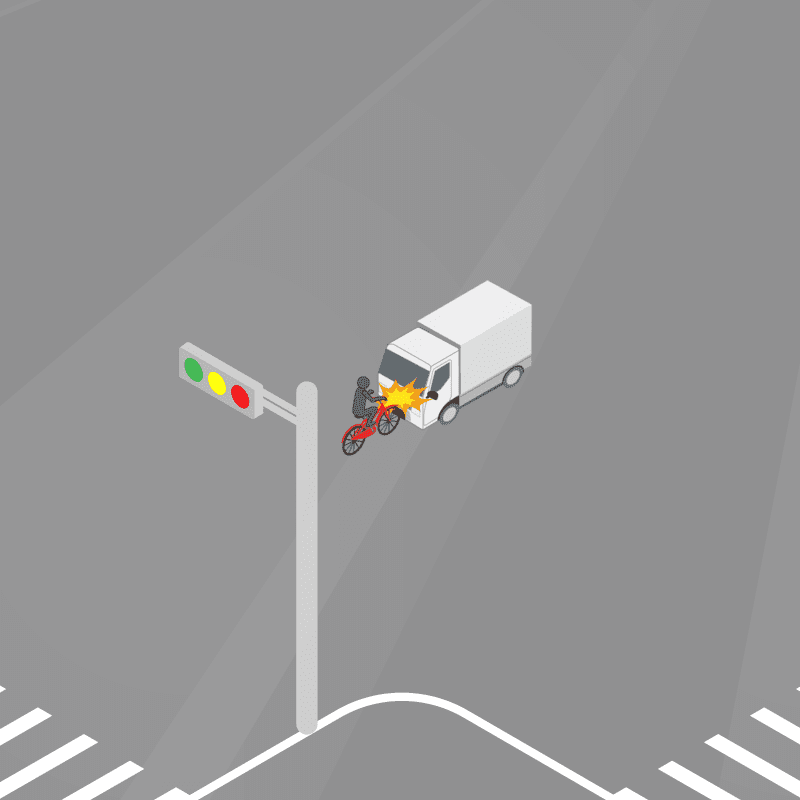 ・イラストに使用している各要素(車、背景、車、天候、信号、衝突地点など)は、代表的なイメージをイラスト化しており、色や形状等含め現実の事故の状況とは異なります。あくまで、事故のイメージとして参考までにご活用ください。