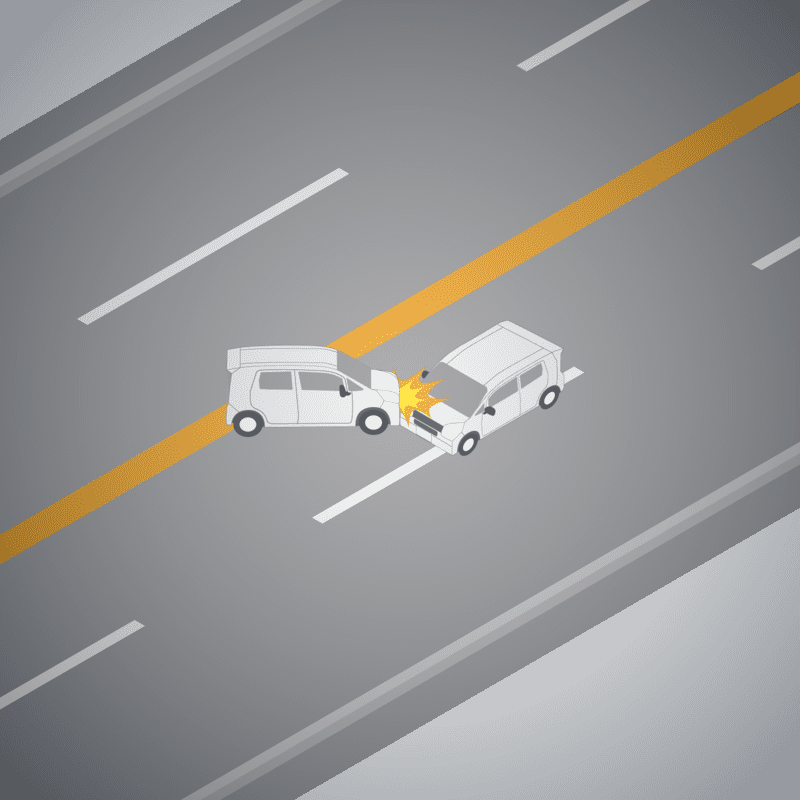 ・イラストに使用している各要素(車、背景、車、天候、信号、衝突地点など)は、代表的なイメージをイラスト化しており、色や形状等含め現実の事故の状況とは異なります。あくまで、事故のイメージとして参考までにご活用ください。