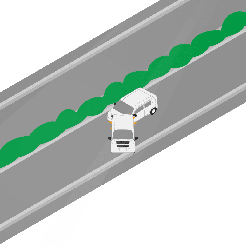 ・イラストに使用している各要素(車、背景、車、天候、信号、衝突地点など)は、代表的なイメージをイラスト化しており、色や形状等含め現実の事故の状況とは異なります。あくまで、事故のイメージとして参考までにご活用ください。