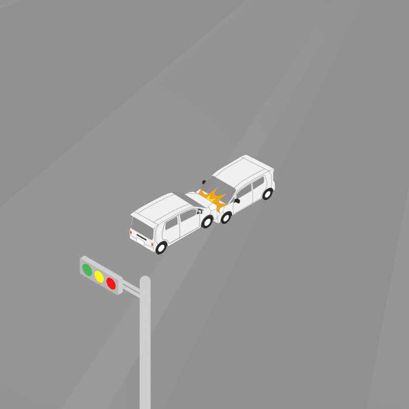 ・イラストに使用している各要素(車、背景、車、天候、信号、衝突地点など)は、代表的なイメージをイラスト化しており、色や形状等含め現実の事故の状況とは異なります。あくまで、事故のイメージとして参考までにご活用ください。
