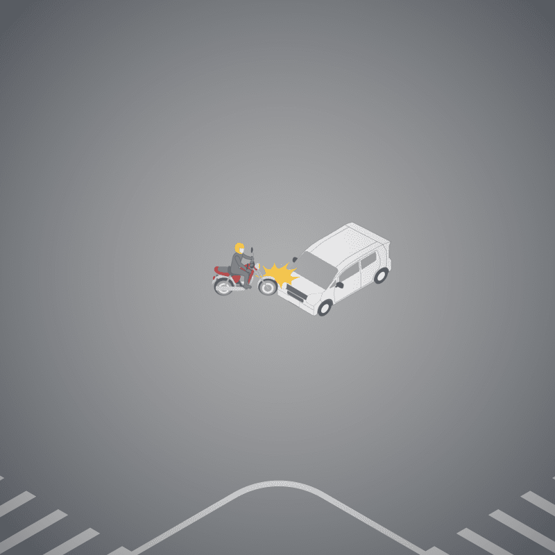 ・イラストに使用している各要素(車、背景、車、天候、信号、衝突地点など)は、代表的なイメージをイラスト化しており、色や形状等含め現実の事故の状況とは異なります。あくまで、事故のイメージとして参考までにご活用ください。