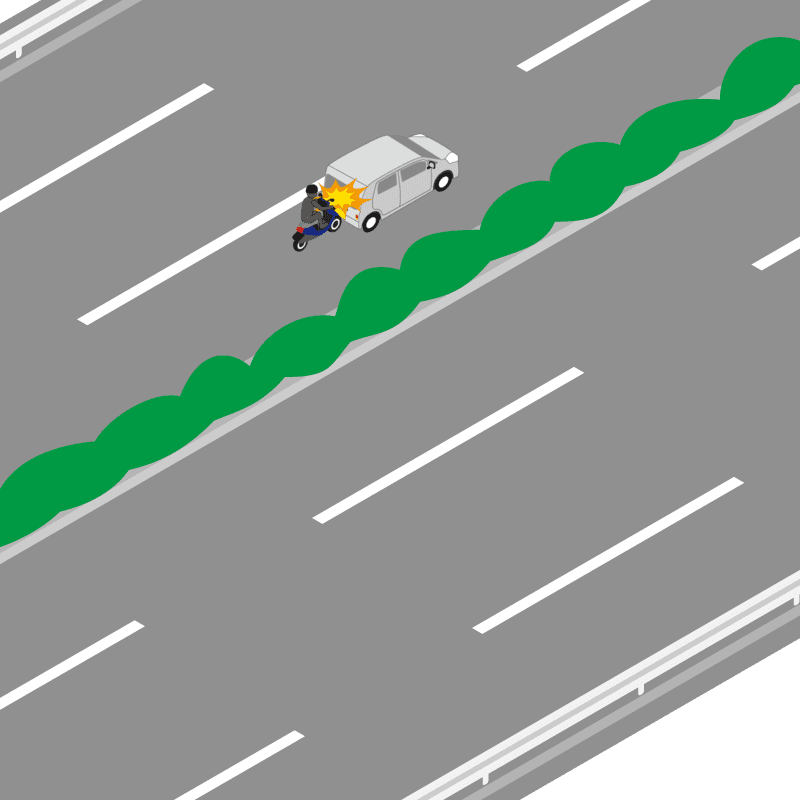 ・イラストに使用している各要素(車、背景、車、天候、信号、衝突地点など)は、代表的なイメージをイラスト化しており、色や形状等含め現実の事故の状況とは異なります。あくまで、事故のイメージとして参考までにご活用ください。