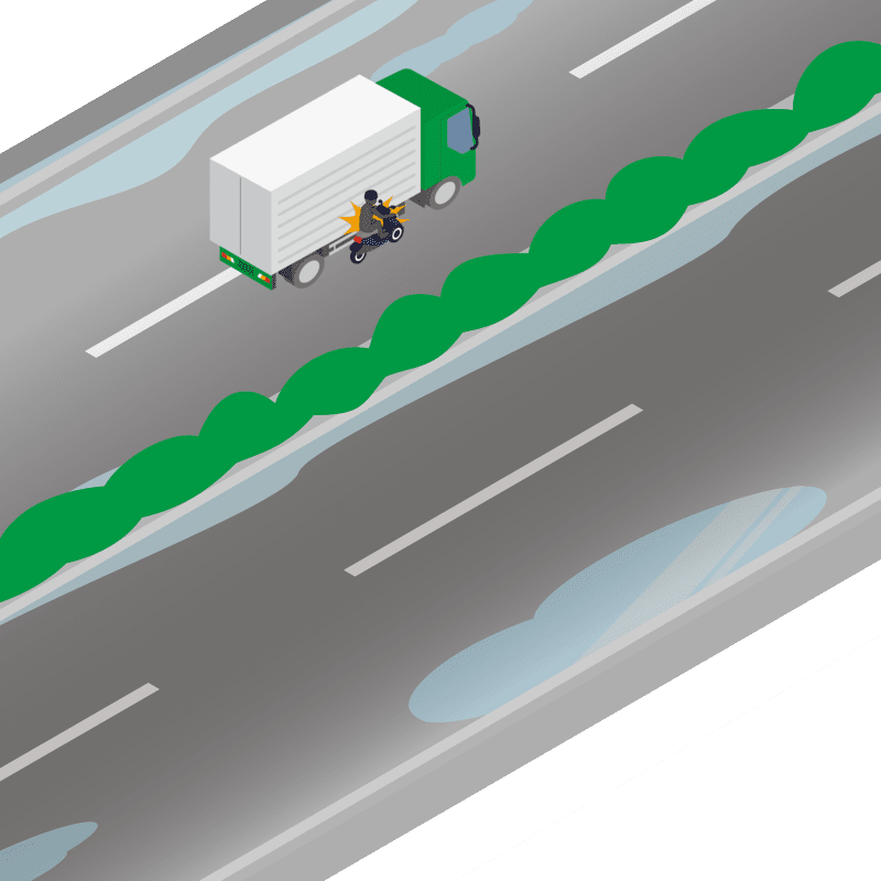 ・イラストに使用している各要素(車、背景、車、天候、信号、衝突地点など)は、代表的なイメージをイラスト化しており、色や形状等含め現実の事故の状況とは異なります。あくまで、事故のイメージとして参考までにご活用ください。