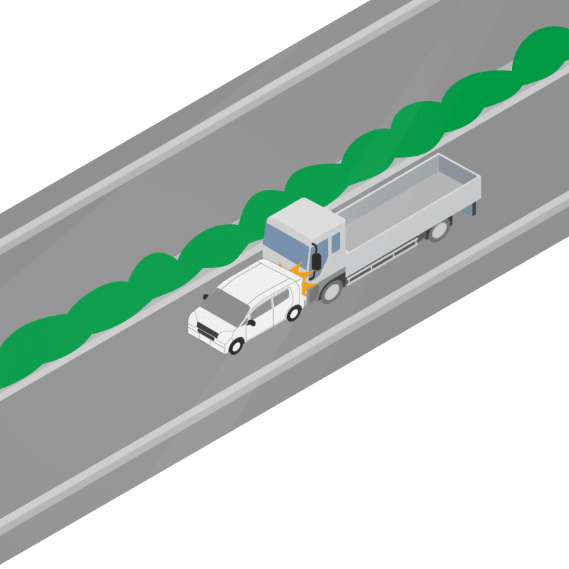 ・イラストに使用している各要素(車、背景、車、天候、信号、衝突地点など)は、代表的なイメージをイラスト化しており、色や形状等含め現実の事故の状況とは異なります。あくまで、事故のイメージとして参考までにご活用ください。