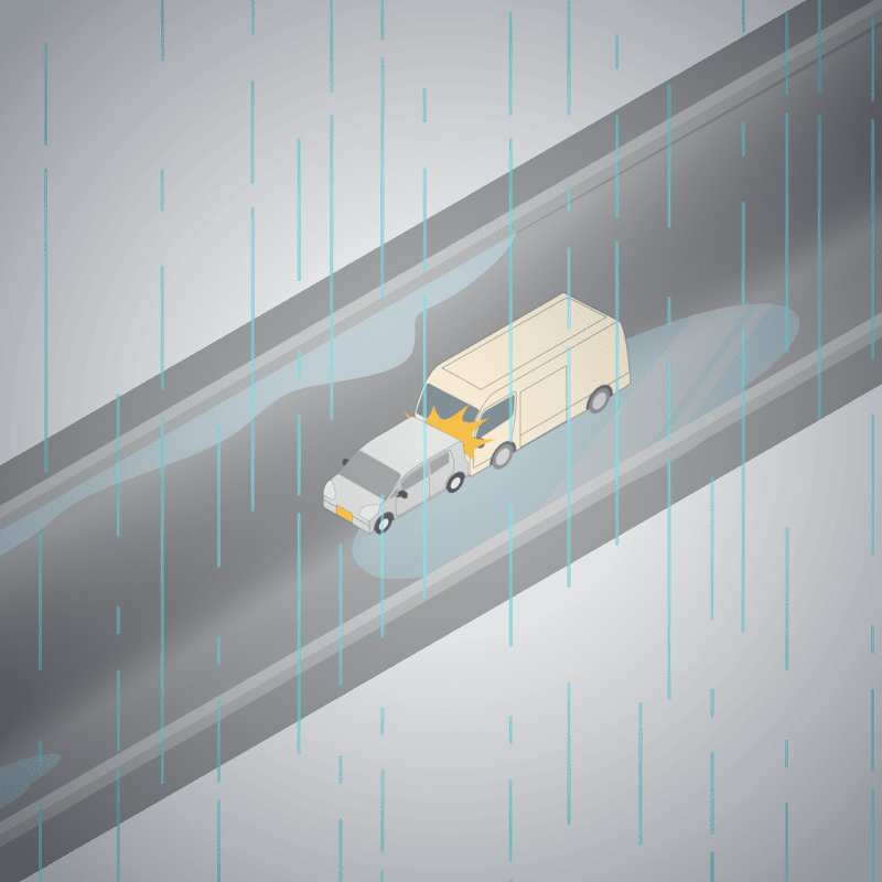 ・イラストに使用している各要素(車、背景、車、天候、信号、衝突地点など)は、代表的なイメージをイラスト化しており、色や形状等含め現実の事故の状況とは異なります。あくまで、事故のイメージとして参考までにご活用ください。