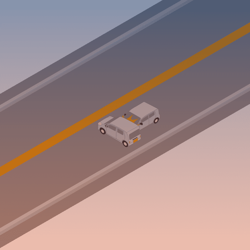 ・イラストに使用している各要素(車、背景、車、天候、信号、衝突地点など)は、代表的なイメージをイラスト化しており、色や形状等含め現実の事故の状況とは異なります。あくまで、事故のイメージとして参考までにご活用ください。