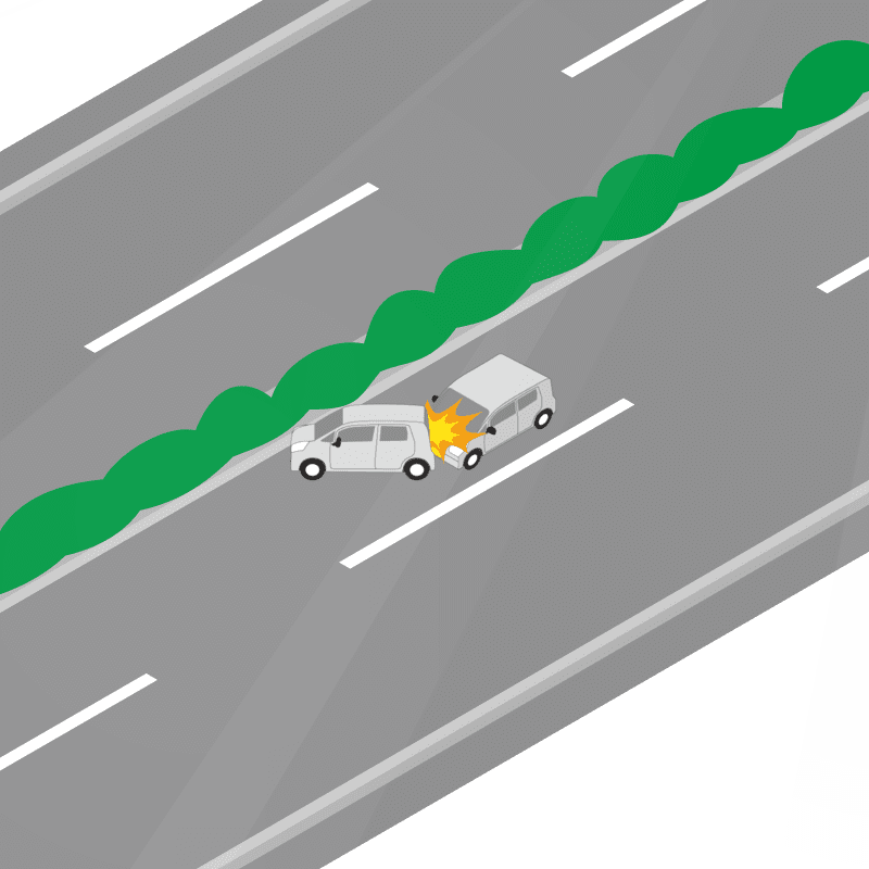 ・イラストに使用している各要素(車、背景、車、天候、信号、衝突地点など)は、代表的なイメージをイラスト化しており、色や形状等含め現実の事故の状況とは異なります。あくまで、事故のイメージとして参考までにご活用ください。