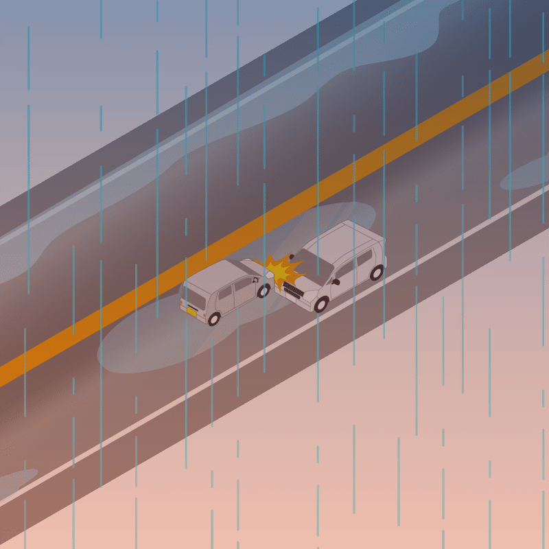 ・イラストに使用している各要素(車、背景、車、天候、信号、衝突地点など)は、代表的なイメージをイラスト化しており、色や形状等含め現実の事故の状況とは異なります。あくまで、事故のイメージとして参考までにご活用ください。
