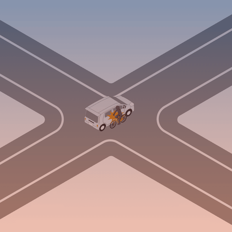 ・イラストに使用している各要素(車、背景、車、天候、信号、衝突地点など)は、代表的なイメージをイラスト化しており、色や形状等含め現実の事故の状況とは異なります。あくまで、事故のイメージとして参考までにご活用ください。