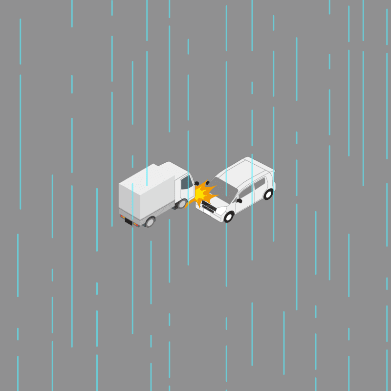 ・イラストに使用している各要素(車、背景、車、天候、信号、衝突地点など)は、代表的なイメージをイラスト化しており、色や形状等含め現実の事故の状況とは異なります。あくまで、事故のイメージとして参考までにご活用ください。
