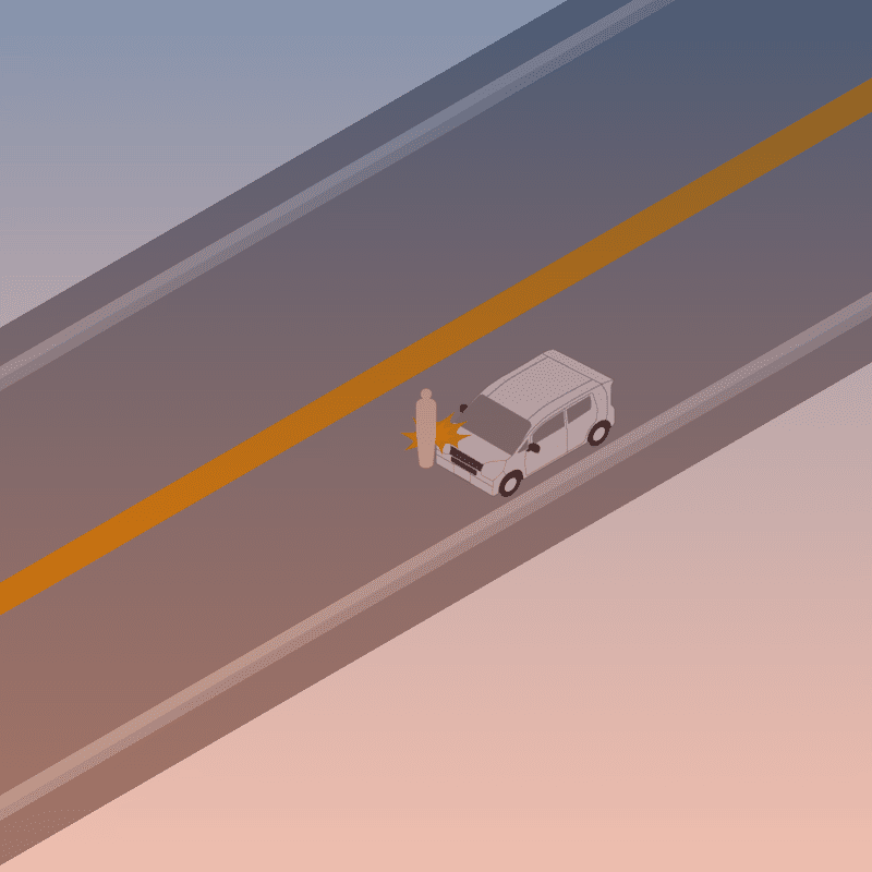 ・イラストに使用している各要素(車、背景、車、天候、信号、衝突地点など)は、代表的なイメージをイラスト化しており、色や形状等含め現実の事故の状況とは異なります。あくまで、事故のイメージとして参考までにご活用ください。