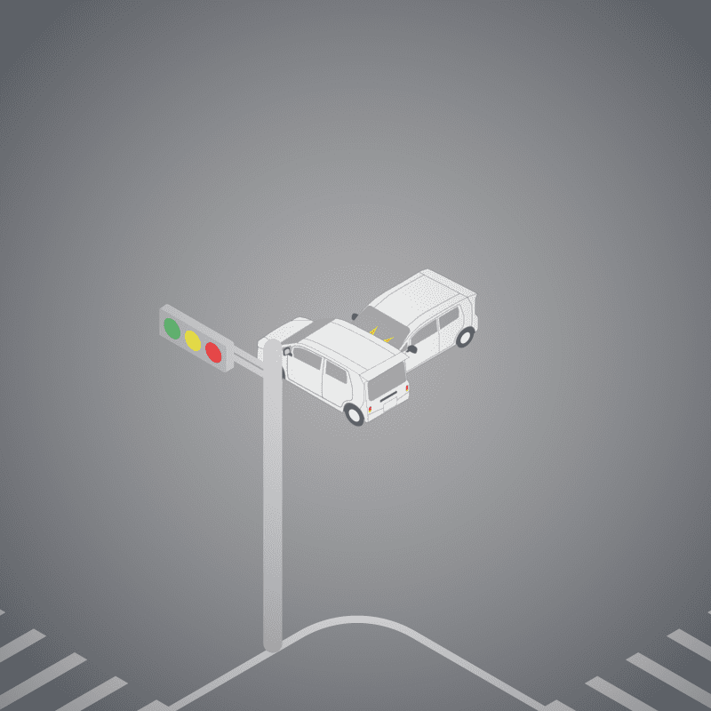 ・イラストに使用している各要素(車、背景、車、天候、信号、衝突地点など)は、代表的なイメージをイラスト化しており、色や形状等含め現実の事故の状況とは異なります。あくまで、事故のイメージとして参考までにご活用ください。