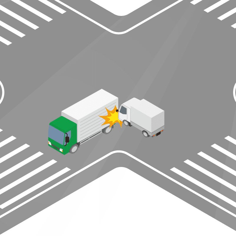 ・イラストに使用している各要素(車、背景、車、天候、信号、衝突地点など)は、代表的なイメージをイラスト化しており、色や形状等含め現実の事故の状況とは異なります。あくまで、事故のイメージとして参考までにご活用ください。