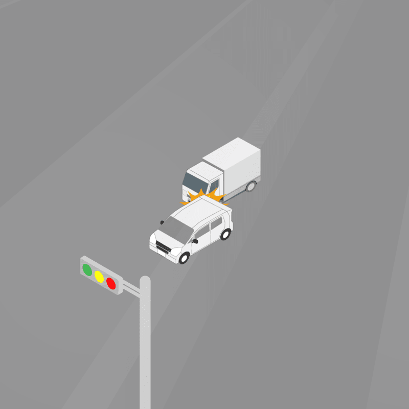 ・イラストに使用している各要素(車、背景、車、天候、信号、衝突地点など)は、代表的なイメージをイラスト化しており、色や形状等含め現実の事故の状況とは異なります。あくまで、事故のイメージとして参考までにご活用ください。