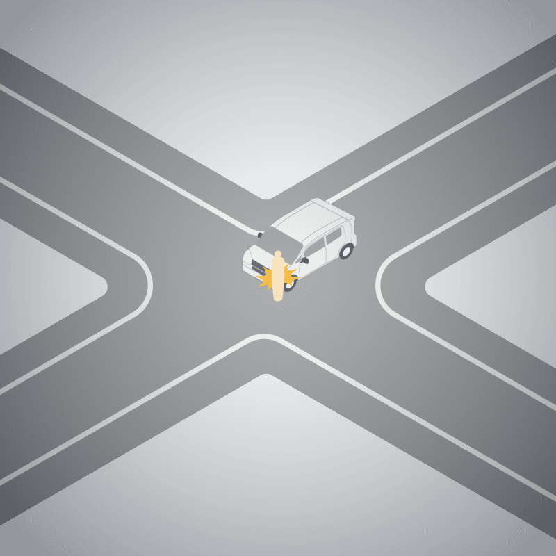 ・イラストに使用している各要素(車、背景、車、天候、信号、衝突地点など)は、代表的なイメージをイラスト化しており、色や形状等含め現実の事故の状況とは異なります。あくまで、事故のイメージとして参考までにご活用ください。