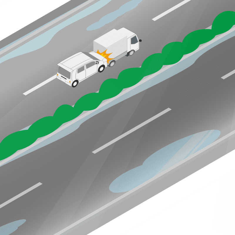 ・イラストに使用している各要素(車、背景、車、天候、信号、衝突地点など)は、代表的なイメージをイラスト化しており、色や形状等含め現実の事故の状況とは異なります。あくまで、事故のイメージとして参考までにご活用ください。