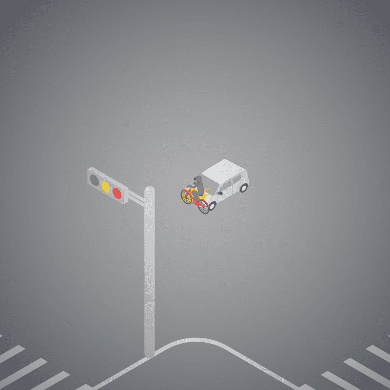 ・イラストに使用している各要素(車、背景、車、天候、信号、衝突地点など)は、代表的なイメージをイラスト化しており、色や形状等含め現実の事故の状況とは異なります。あくまで、事故のイメージとして参考までにご活用ください。