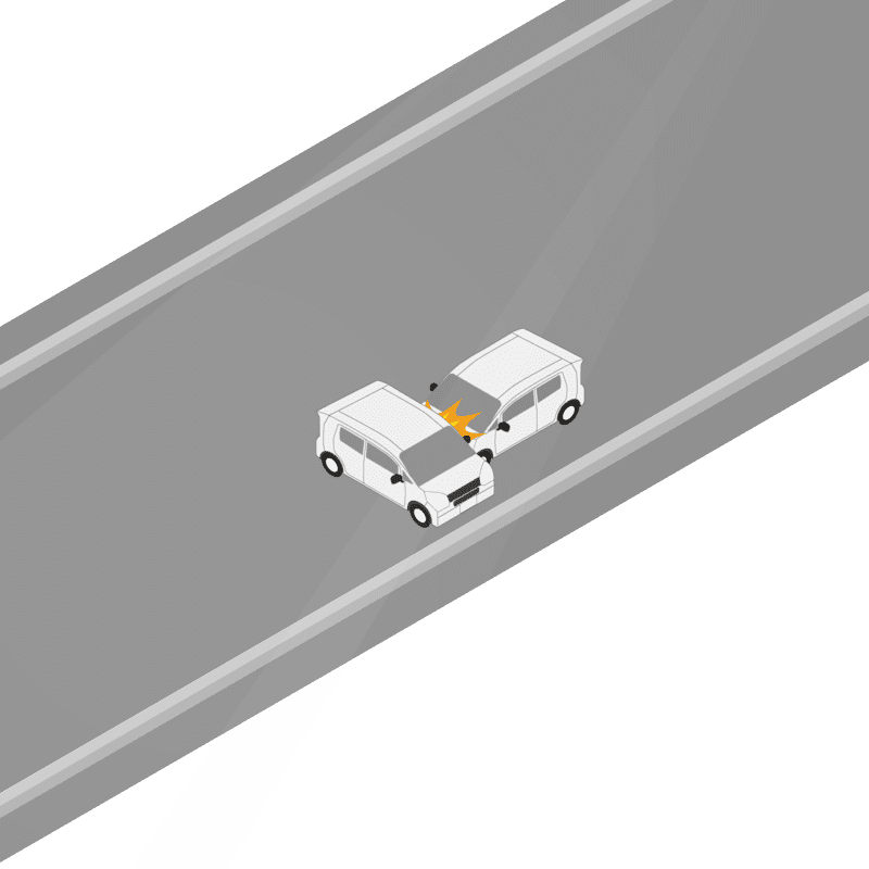 ・イラストに使用している各要素(車、背景、車、天候、信号、衝突地点など)は、代表的なイメージをイラスト化しており、色や形状等含め現実の事故の状況とは異なります。あくまで、事故のイメージとして参考までにご活用ください。