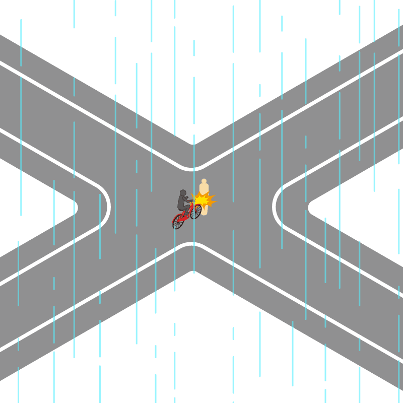 ・イラストに使用している各要素(車、背景、車、天候、信号、衝突地点など)は、代表的なイメージをイラスト化しており、色や形状等含め現実の事故の状況とは異なります。あくまで、事故のイメージとして参考までにご活用ください。